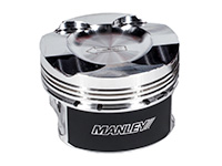 Manley pistons are machined of high strength 2618 material. Each design is lightweight yet robust enough to deliver long service life. Offset wrist pin design is utilized for quiet start-ups. Perfect ring groove to skirt squareness is achieved through our unique "one fixturing" manufacturing method that assures maximum horsepower. All pistons come with moly coated skirts. Round wire locks, premium chrome moly wrist pins, and premium steel top ring sets from Total Seal are included with every kit at no additional charge. Recommended clearance: .0035" measured .850" from the bottom of the oil ring groove. |