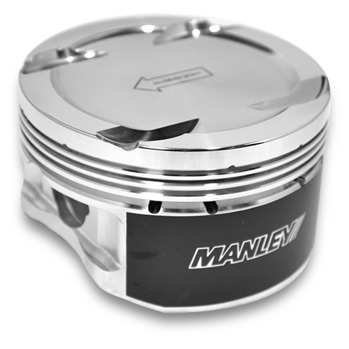 Manley pistons are machined of high strength 2618 material. Each design is lightweight yet robust enough to deliver long service life. Offset wrist pin design is utilized for quiet start-ups. Perfect ring groove to skirt squareness is achieved through our unique "one fixturing" manufacturing method that assures maximum horsepower. All pistons come with moly coated skirts. Round wire locks, premium chrome moly wrist pins, and premium steel top ring sets from Total Seal are included with every kit at no additional charge. Recommended clearance: .0030" measured 1.100" from the bottom of the oil ring groove.