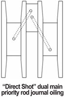 “Direct Shot" dual main priority rod journal oiling